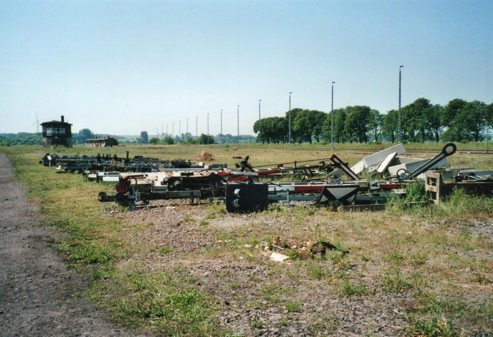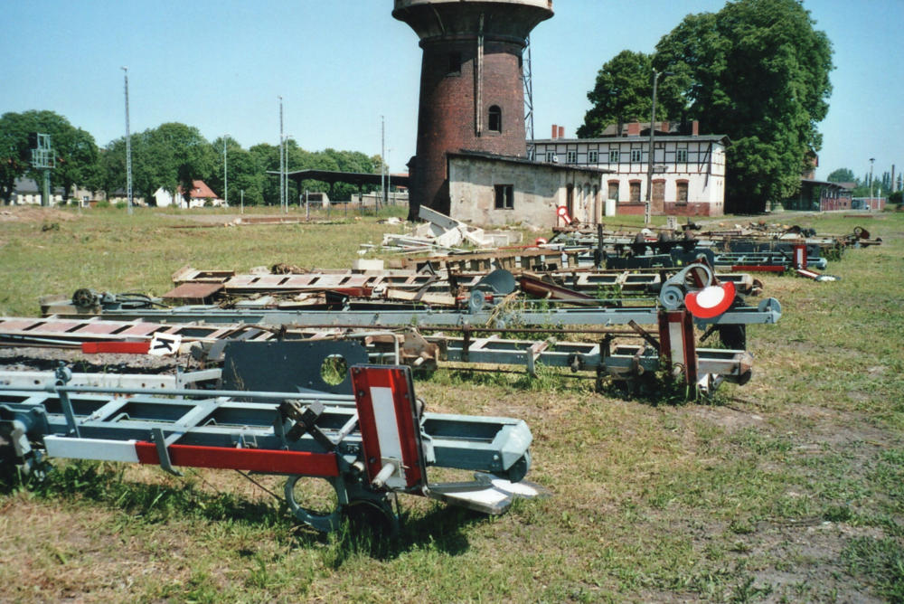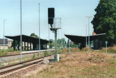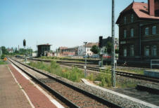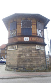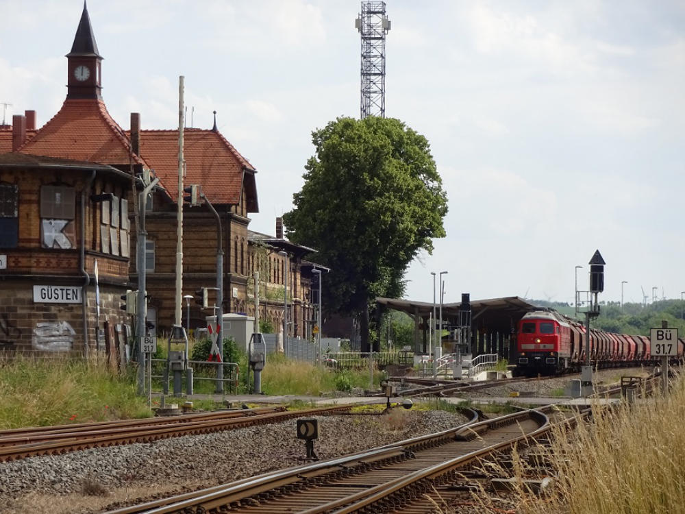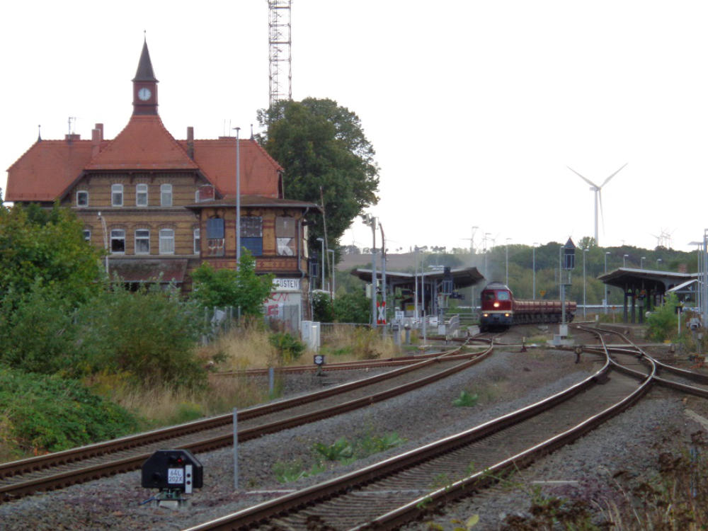 Der gesamte Bahnhof Güsten besteht nach dem Umbau nur noch aus zwei durchgehenden Haupt-gleisen und einem Stumpfgleis, wo noch Triebwagen wenden können. Es exestiert kein Überhol-gleis und damit keinerlei Möglichkeiten einer Zugkreuzung. Hier hat der Sparwahn der DeutschenBahn- AG voll zugeschlagen. Am 31.03.1995 wurde die Fahrkartenausgabe geschlossen. DasEmpfangsgebäude verfällt seitdem zusehens. Ab August 2000 wurde auf der Berliner Seite nachAbbau der Gleisanlagen ein Busbahnhof errichtet.